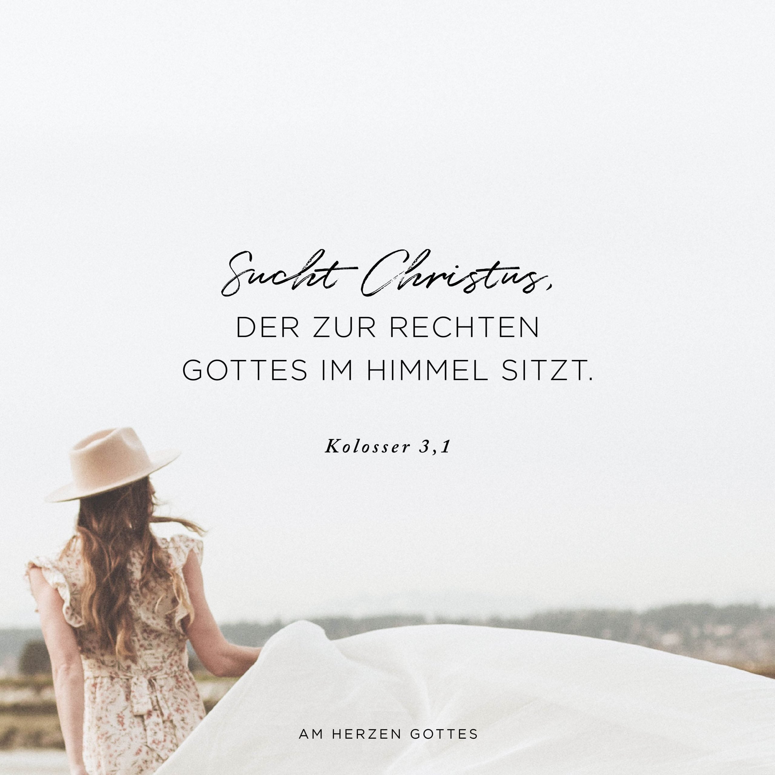 „Da ihr mit Christus zu neuem Leben auferweckt wurdet, sucht Christus, der zur Rechten Gottes im Himmel sitzt. Denkt nicht an weltliche Angelegenheiten, sondern konzentriert eure Gedanken auf ihn! Denn ihr seid gestorben, als Christus starb, und euer wahres Leben ist mit Christus in Gott verborgen.” (Hervorhebungen der Verfasserin)